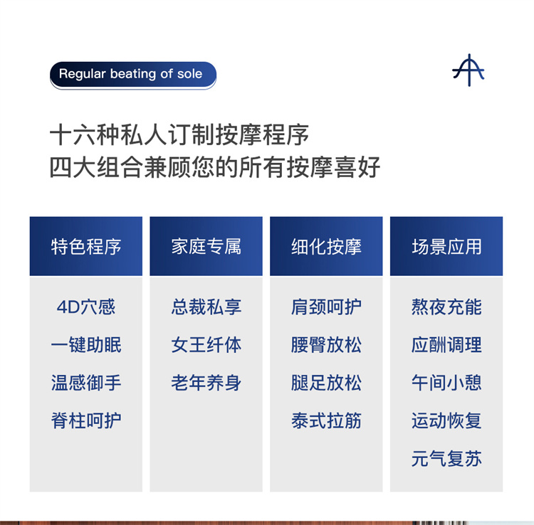 醫(yī)師級(jí)服務(wù):專業(yè)程序調(diào)校人員針對(duì)用戶不同時(shí)身體狀況進(jìn)行按摩程序定制