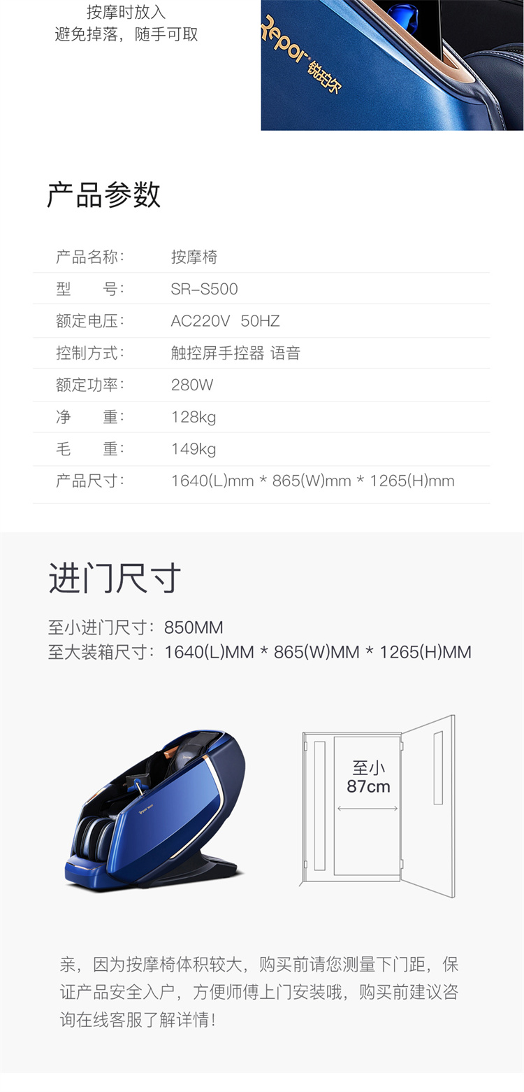 銳珀?duì)栃缕钒茨σ蜤8 Pro擁有溫感養(yǎng)生系統(tǒng),3D擺揉機(jī)械手,十大按摩手法,138cm超長(zhǎng)SL按摩導(dǎo)軌,腿足一體按摩等功能,并且有無(wú)線充的一款新品按摩椅,價(jià)格不貴,重在享受。
