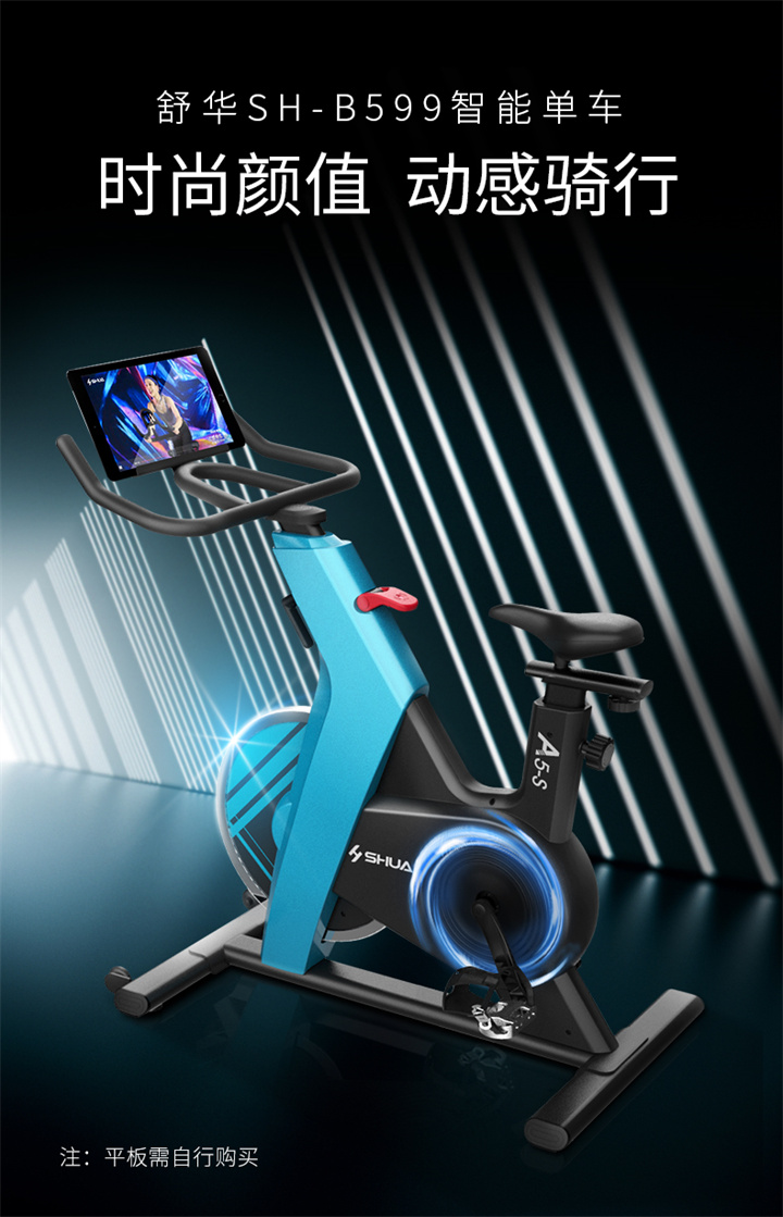 leyu.樂魚體育推薦健身器材-舒華動(dòng)感單車SH-B599采用三角形車架搭配工字底座的穩(wěn)定結(jié)構(gòu)設(shè)計(jì),騎行更穩(wěn)定,承重可達(dá)125kg,手動(dòng)磁控阻力設(shè)計(jì),騎行時(shí)無(wú)物理摩擦,更順暢靜音,同時(shí)無(wú)需插電,使用更便捷。13kg磁控飛輪,足量均質(zhì),保障騎行時(shí)的慣性力及動(dòng)平衡,騎行勁爽。