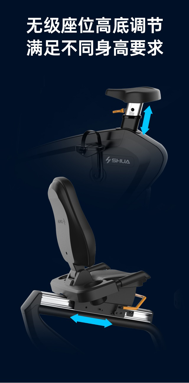 舒華臥式商用健身車(chē)SH-B9100U(V10)采用自發(fā)電,40段電磁控阻力系統(tǒng),9.3kg飛輪重量。