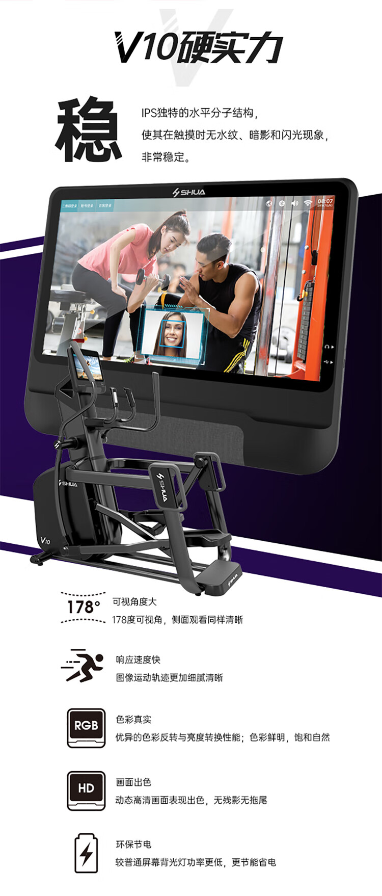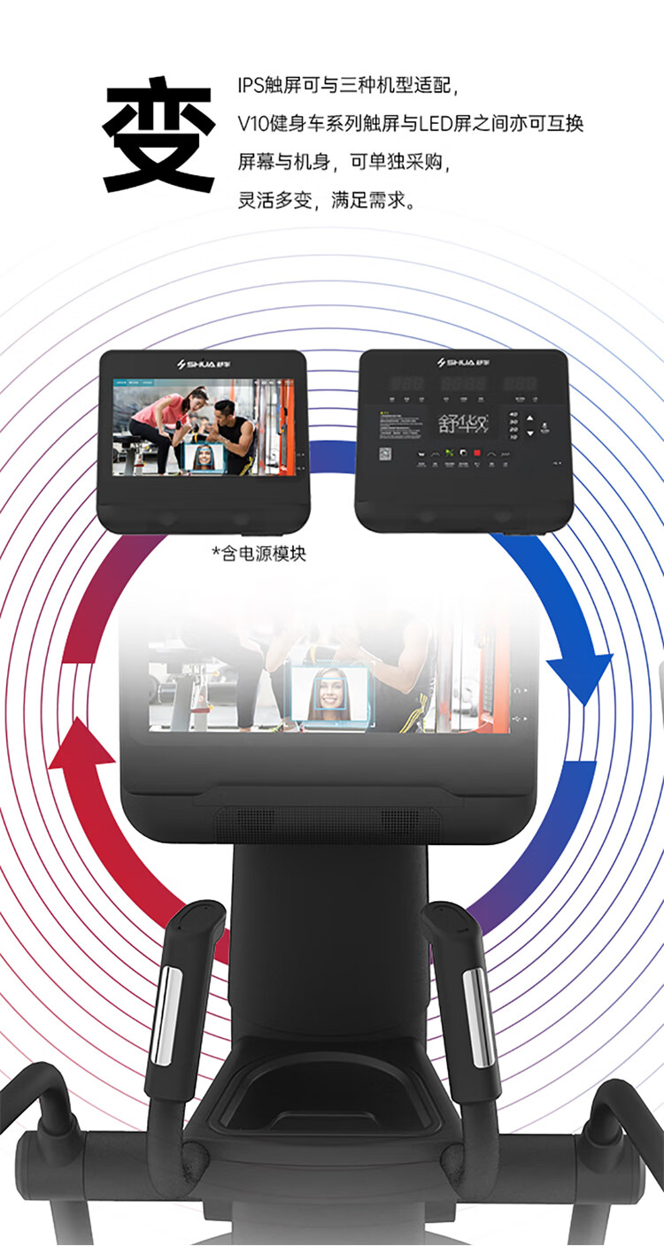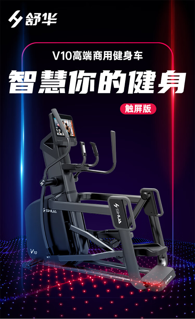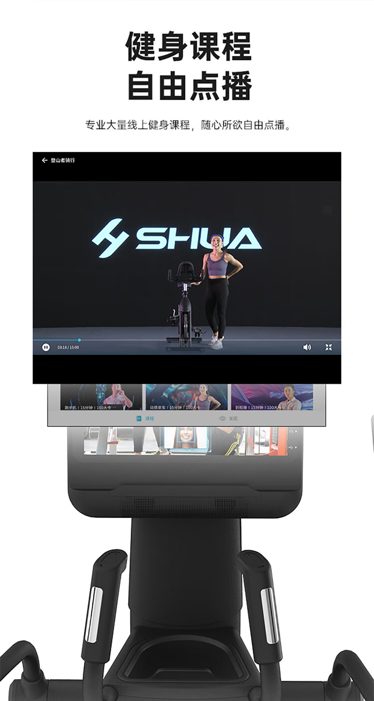 舒華立式商用健身車SH-B9100U(V10)觸屏版擁有超大顯示和操作屏幕, 可以任意設置阻力、時間和距離等參數(shù),還可以即時顯示心跳和轉(zhuǎn)速等數(shù)據(jù),同時,SH-B9100U提供多項科學運動處方,更輕松掌握運動節(jié)奏。
