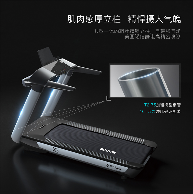 leyu.樂魚體育推薦健身器材-舒華商用電動跑步機SH-T6500擁有10.1寸IPS高清觸摸屏、Z型動感時尚外觀設計、70×150mm精鋼立柱機身、F級高效靜音馬達、520mm商用豪華跑帶和35mm雙層全跑臺減震跑板等優(yōu)勢,讓您享受科學跑步。