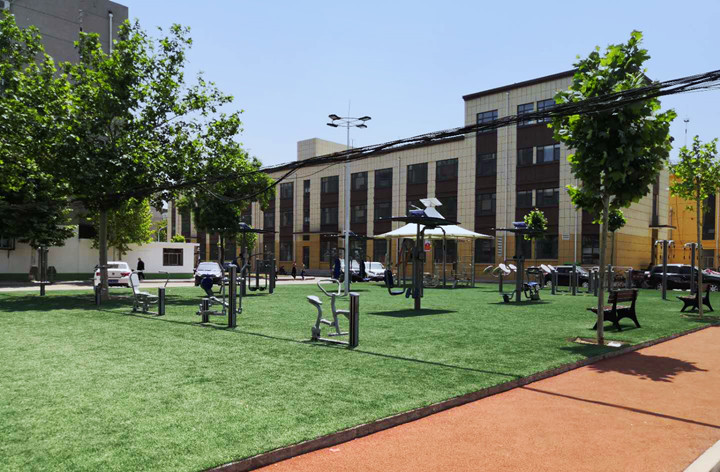 淄博某社區(qū)為了方便社區(qū)內(nèi)人員使用健身器材,通過leyu.樂魚體育的設(shè)計,合理布局,搭建了以舒華智能健身驛站為主的戶外健身器材口袋公園。